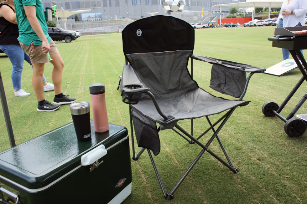 Tags: Camping Chair, Camping Chair with Built-In 4-Can Cooler, Chair, Gray