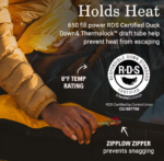 - HOLDS HEAT: Thermolock™ draft tube, form-fitting hood, slim silhouette, and baffle at neck helps prevent heat from escaping