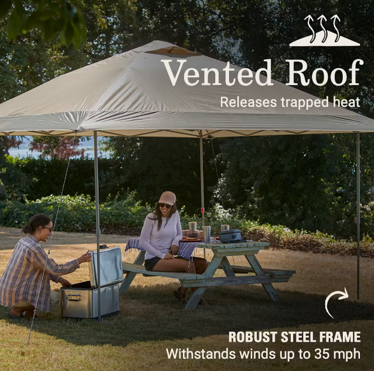 - SUN PROTECTION: UPF 50+ blocks sun’s harmful UV rays; overhanging eaves provide larger shade area (169 sq. ft.)
