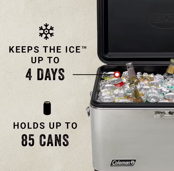 - KEEPS THE ICE: For up to 4 days in temperatures as high as 90°F