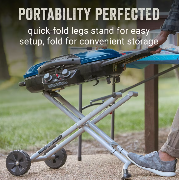 ULTIMATE PORTABILITY: Easy-collapsing steel scissor legs with 2 robust wheels for easy transport, setup and storage SMOOTH COOKING SURFACE: Cook